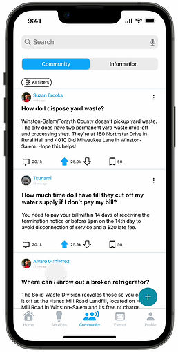 Connects with thousands of Winston-Salem residents to ask questions and share solutions in the community section.